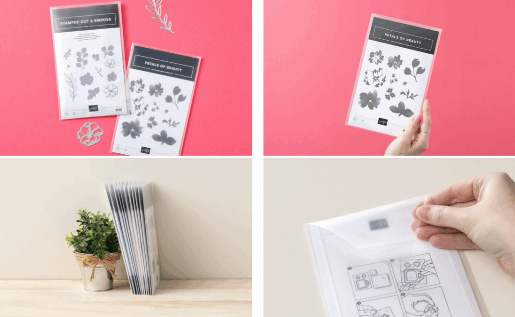 Just a reminder: the products in this Online Exclusive release will be the first to feature our newly redesigned packaging. Both photopolymer stamps and dies will come in sleeker and slimmer clear plastic envelopes that measure 5⅝" x 9" or 14.3 x 22.9 cm). Die packages will now also feature printed artwork for much easier identification and organisation, and the larger size will mean more stamp artwork can be shown at 100%. In addition, you can now purchase these clear, durable plastic envelopes separately in packs of 10 should you wish to switch your existing stamp and die sets to this new space-saving design.